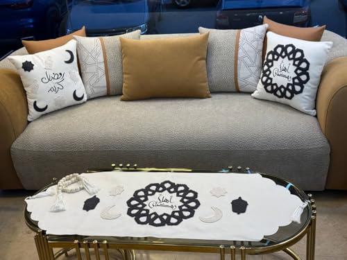 - تصميم أنيق: يتميز بتطريز رمضان كريم الجميل مع أنماط هندسية زخرفية وأقمار هلال ونجوم مما يخلق جوًا احتفاليًا لمنزلك