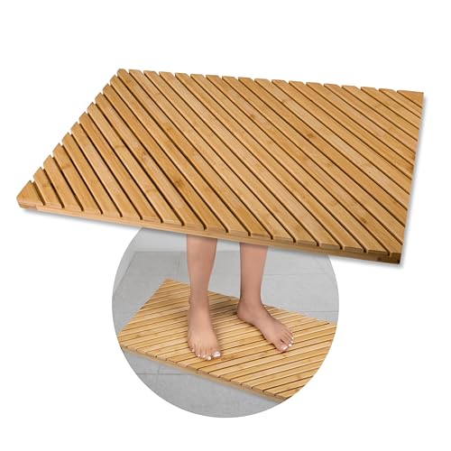 Global Quality Solutions SR - سجادة حمام من البامبو صديقة للبيئة متينة ومقاومة للماء ومضادة للانزلاق وسهلة التنظيف متعددة الاستخدامات مناسبة لأي مساحة مثل الحمام والمدخل والمناطق الخارجية والسبا من جلوبال كواليتي سولوشنز اس ار