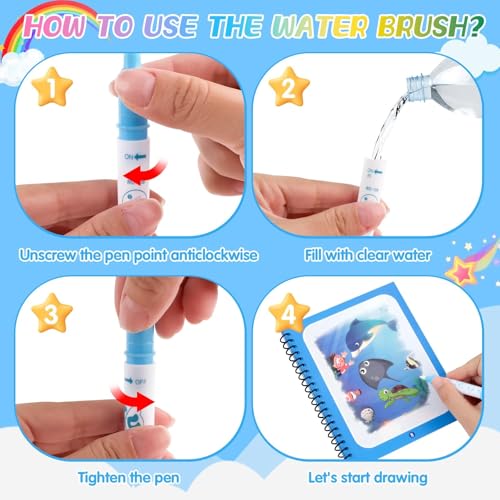 - 【هدية مثالية】كتاب الرسم المائي السحري هذا هو لعبة إبداعية مثالية للأطفال فوق 3 سنوات، كما أنه هدية مثالية لأعياد الميلاد أو عيد الطفل أو الكريسماس أو المناسبات الخاصة الأخرى.