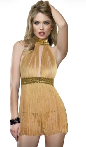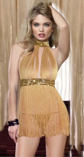 Generic - بدلة رقص شرقي مثيرة بلون ذهبي، ملابس نوم بنمط خاص للنساء من قطعتين