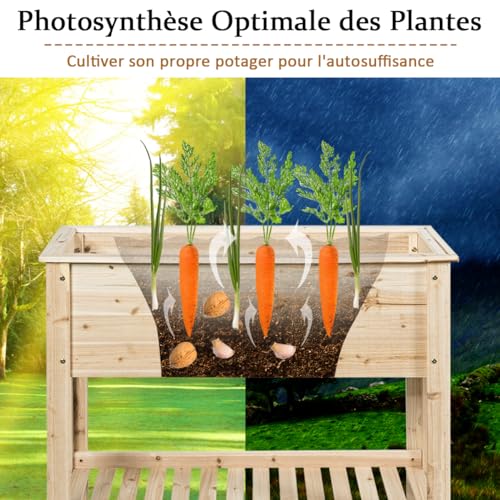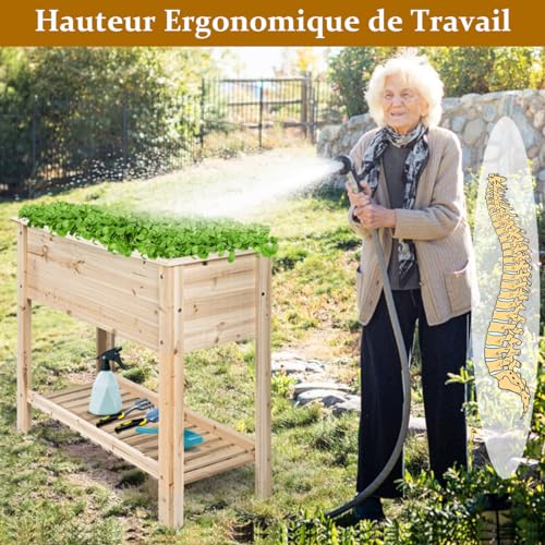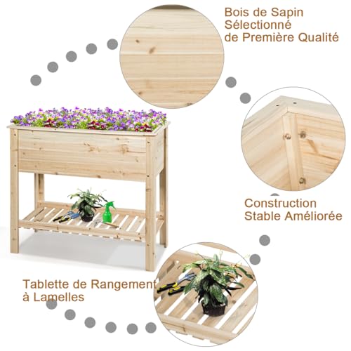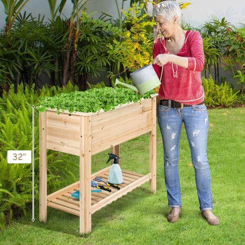 GOPLUS - جوبلس سرير خشبي مرتفع مربع للحديقة مع رف للخضروات والاعشاب والزهور والحديقة والفناء والشرفة، حمولة 80 كجم (36 × 15.9 × 31.5 انش)