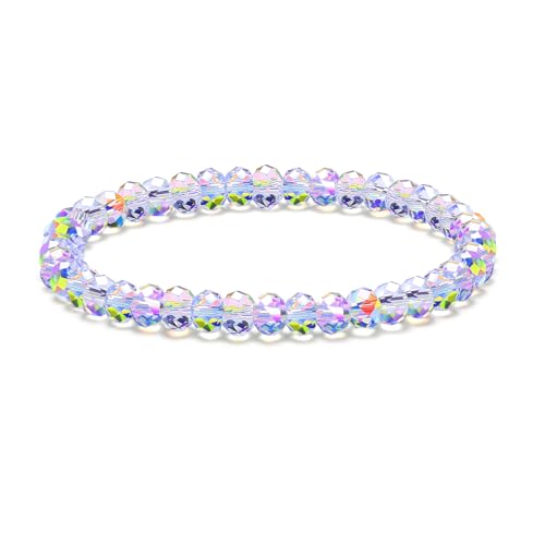 HANGINTHERE - اساور كريستال بتصميم اضواء نورثرن لايت للنساء من هانجينذر، سوار كريستال مرن شفاف انيق وطاقة علاجية لعيد الام وعيد الميلاد والذكرى السنوية هدية مجوهرات للبنات والنساء والام (6 ملم)