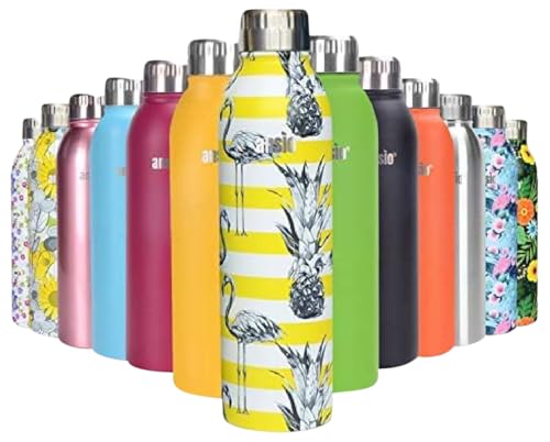 Hanso 1 - زجاجة مياه معزولة بتفريغ الهواء من الفولاذ المقاوم للصدأ من هانسو، زجاجة مياه رياضية مزدوجة الجدار مانعة للتسرب، ساخنة وباردة، خالية من مادة بيسفينول أ، (600 مل) (متعددة الألوان)