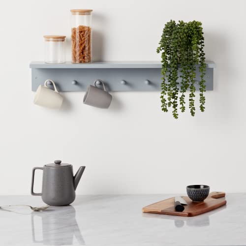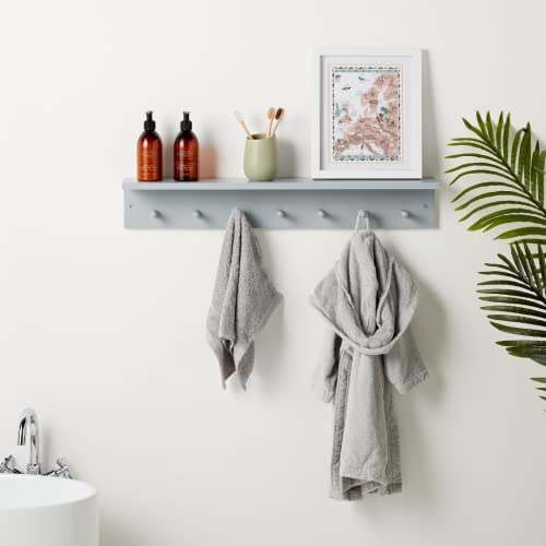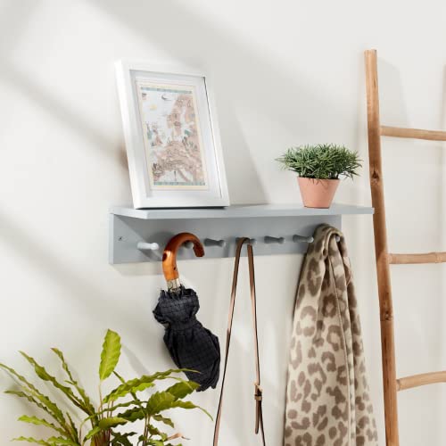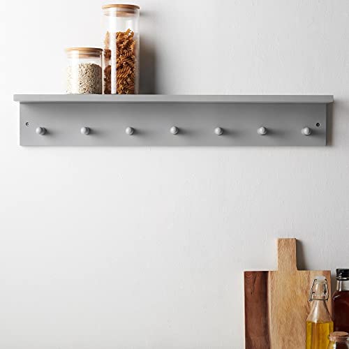 Haus Projekt - رف حائط بروجيكت مع خطافات من هاوس - رمادي معطف 7 أوتاد - عائم خشبية تخزين لتعليق المعاطف والفوط والإكسسوارات المطبخ