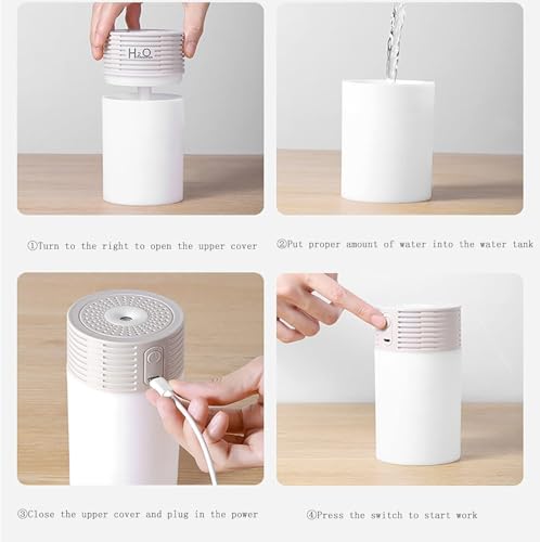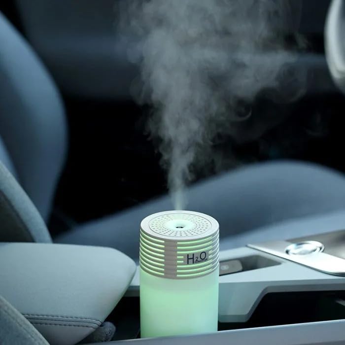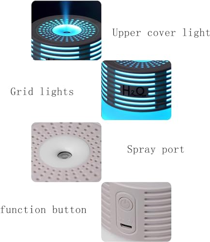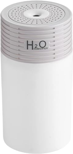 Generic - جهاز ترطيب هواء محمول فائق الهدوء بتقنية الموجات فوق الصوتية، للاستخدام في المنزل والمكتب والسيارة، مرطب هواء صغير مزود بمصباح ليلي بـ 7 ألوان إضاءة ليد بسعة 300 مل، لون أبيض ورمادي