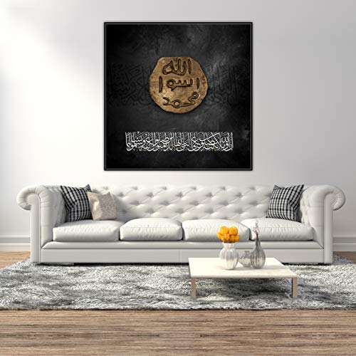 Generic - لوحة جدارية اسلامية من ايوان، مطبوعة على قماش كانفاس بإطار خشبي مخفي، مقاس 80*80 محاطة ب فريم مودرن