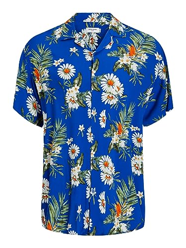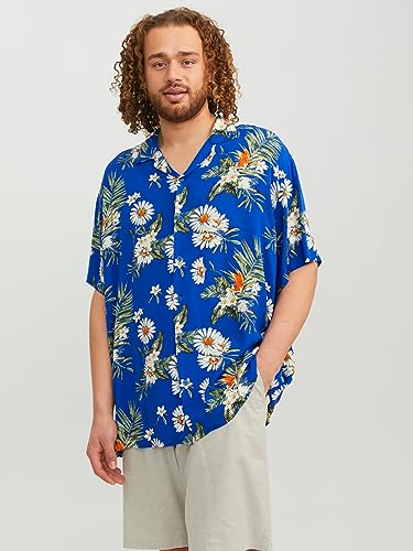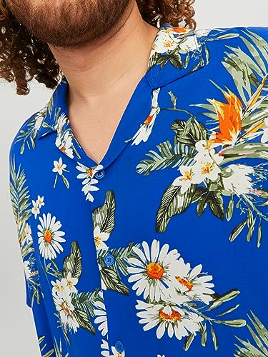 JACK & JONES - قميص لوك فلوريس ريزورت بأكمام قصيرة للرجال من جاك اند جونز، مقاس كبير