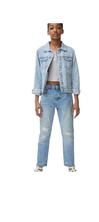 Generic - بنطلون جينز بوي فريند 4063 للبنات من جيه بي اس، ازرق فاتح (ازرق فاتح، 14 سنة)