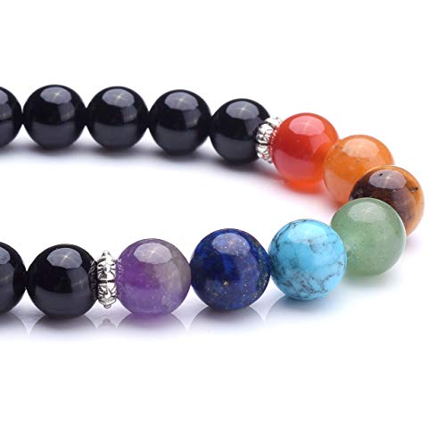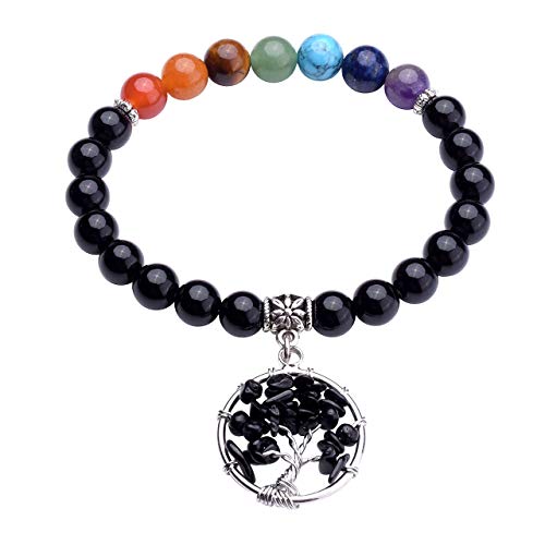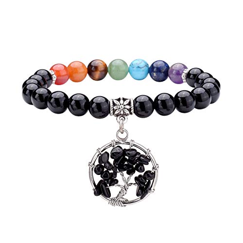 JSDDE - سوار مصنوع من الكريستالات الطبيعية ومزين بدلاية شجرة الحياة للعلاج بنمط ريكي يغطي 7 نقاط الشاكرا عن طريق الاحجار الكريمة وموازنة الطاقة اثناء التامل واليوجا من جيه اس دي دي اي, 7 inches, حجر