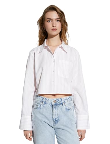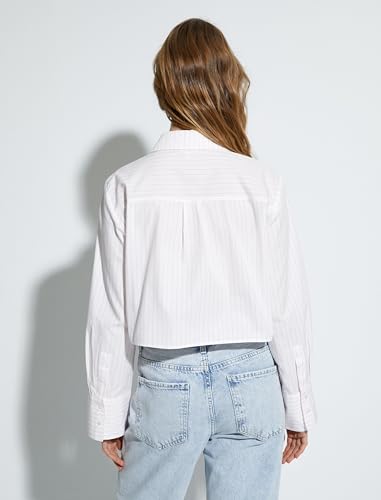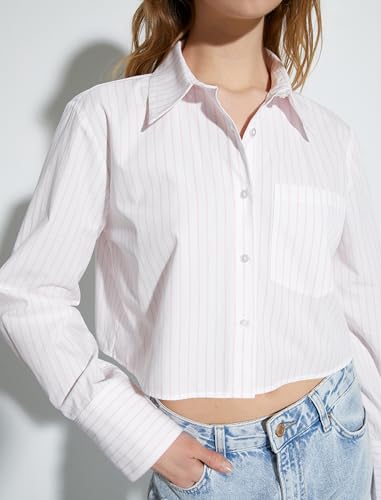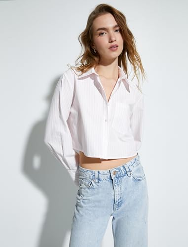 KOTON - قميص حريمي قصير بأكمام طويلة ورقبة كلاسيكية وأزرار وجيب بتصميم عصري من كوتون (عبوة من قطعة واحدة)