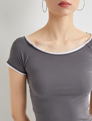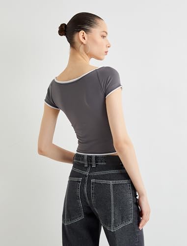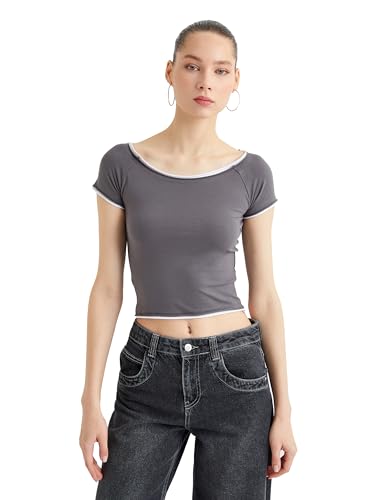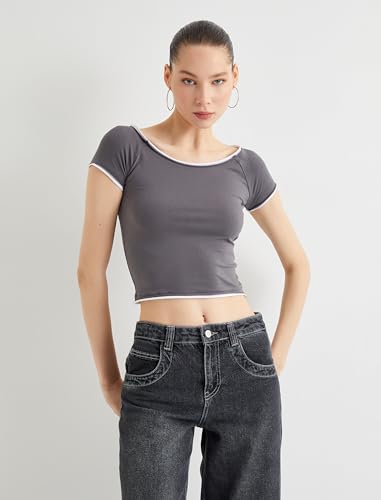 KOTON - تيشرت قصير بأكمام قصيرة وقصّة كلاسيكية للنساء من كوتون (قطعة واحدة)