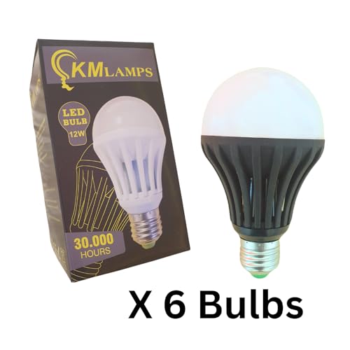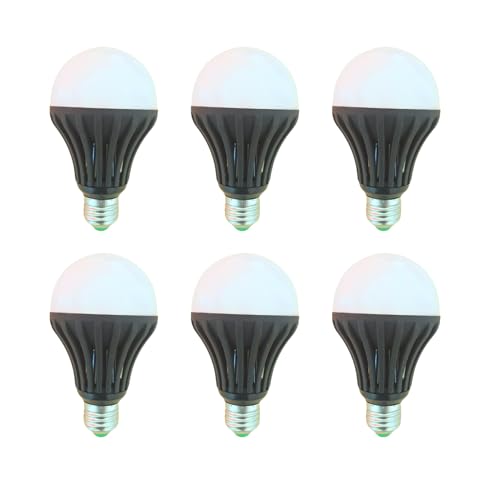 Lamps - مصابيح - لمبة ليد موفرة للطاقة بهيكل من الألومنيوم، لمبة ليد بقوة 12 وات وضوء نهاري أبيض بدرجة حرارة 6500 كلفن، عمر افتراضي يصل إلى 30,000 ساعة (عبوة من 6 قطع) (هيكل أسود)