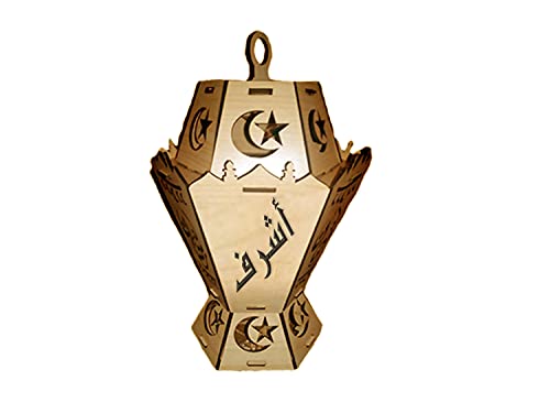 Hot-print - فانوس خشب محفور ليزر بوحدة اضاءة 35 سم باسم أشرف، من هوت برينت
