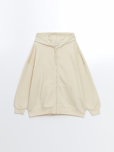 LC WAIKIKI - سويت شيرت سادة بغطاء للرأس وسوستة وأكمام طويلة للنساء من ال سي وايكيكي