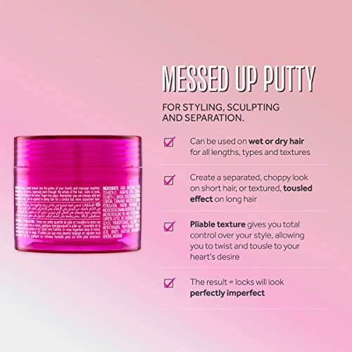 - الفوضى هي كل شيء عن شعر "الفتاة الرائعة". وهنا يصبح الشعر فوضوي وبارد في مرطبان. معجون ميسد اب متعدد المهام وهذا هو السبب في أن العديد من مصففي الشعر يحملونه في مجموعتهم. يمكن استخدامه على الشعر الرطب أو الجاف ومناسب لجميع أطوال الشعر. يفترض الكثير من الناس أن المعجون مخصص للشعر القصير فقط، ولكن المعجون يمكن أن يمنح الشعر الطويل تأثيرًا محكمًا ومحكمًا. هل تعلمين، يمكنك استخدام معجون على الأمواج للحصول على مظهر حي مما يساعدهم على الظهور بمظهر غير مثالي تمامًا. يفصل التصميم والنحت بشكل رائع للتجعيدات والتموجات ويضيف عطرًا رائعًا.