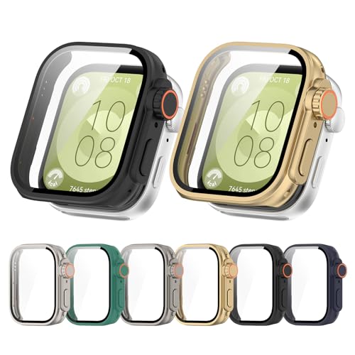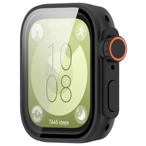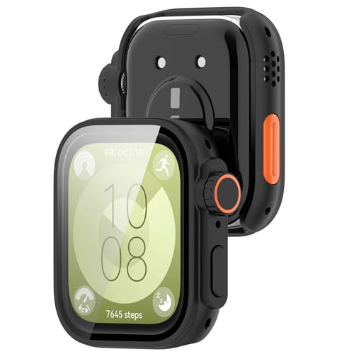 LOKEKE - جراب حماية من البولي كربونات مع شاشة حماية بتغطية كاملة من الزجاج المقوى، متوافق مع ساعة هواوي فيت 3 من لوكيكي، لون أسود