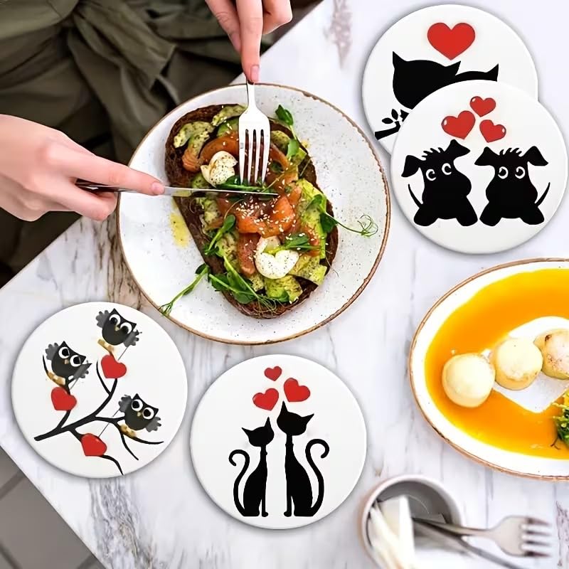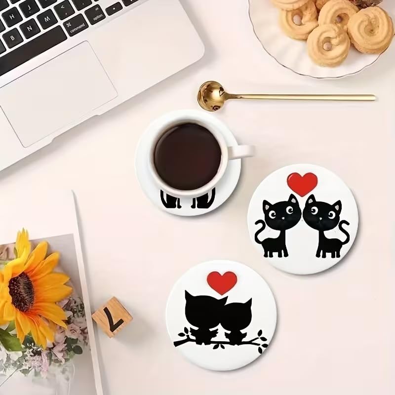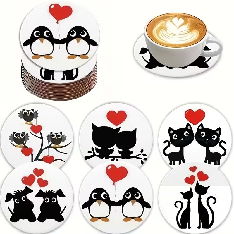 - تصميم فريد: حاملات أكواب بتصميم حيوانات متعاشقة مع قلوب حمراء، تضيف لمسة رومانسية وجمالية لطاولتك