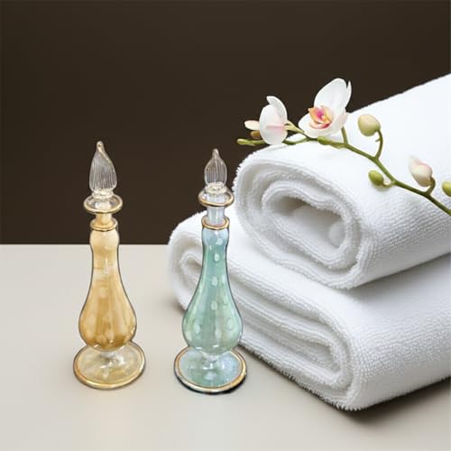 Generic - زجاجات عطر زجاجية مصرية، عبوات زجاجية منفوخة يدويًا، لون كهرماني/ تركواز، مقاس 21 سم، مجموعة من قطعتين، موديل LW7
