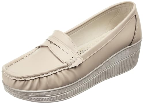 MADYOS - حذاء كاجوال بمقدمة مغلقة لأصابع القدم ونعل مطاطي 4 سم للنساء من ماديوس، لون بيج، مقاس 38