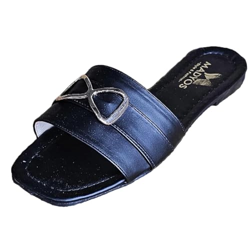 MADYOS - شبشب مسطح من الالياف الصناعية بنعل متباين مفتوح من الامام للنساء من ماديوس، لون اسود، مقاس 37 EU