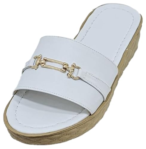 MADYOS - شبشب مسطح من الالياف الصناعية بنعل متباين مفتوح من الامام للنساء من ماديوس، لون ابيض، مقاس 39 EU