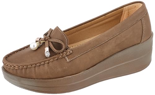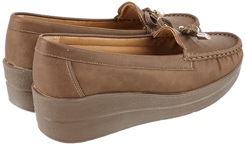 MADYOS - حذاء مغلق بنعل مطاطي 4 سم مع اكسسوار بسيط ناعم من ماديوس لون كافيه مقاس EU 37 للنساء
