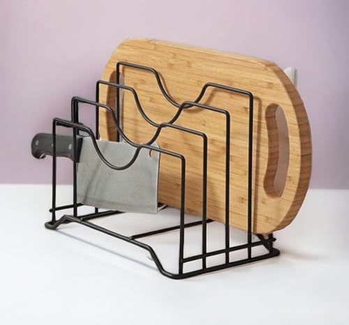 generic - حامل اواني حديد اسود مقاس M | 4 فتحات | طول 9.5 انش × عرض 7 انش × ارتفاع 9 انش | حامل يثبت على الحائط