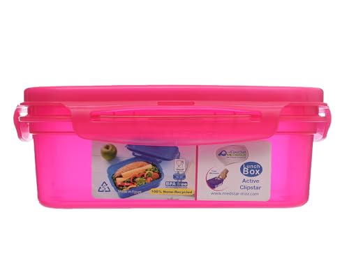 Medstar - لانش بوكس اكتيف كليب ستار مستطيل 1 لتر_فوشيا شفاف_عبوه18 من ميد ستار-996