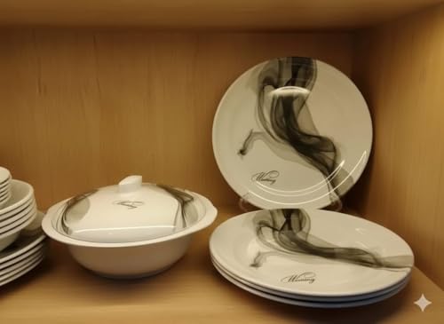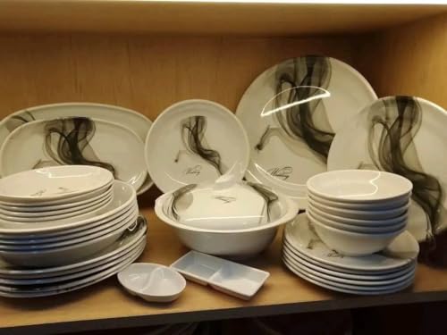 - طقم أطباق متعدد القطع: مجموعة شاملة من أطباق الميلامين الفاخرة تتضمن أطباق رئيسية وأطباق جانبية وأوعية وصحون تقديم لتلبية جميع احتياجات المائدة