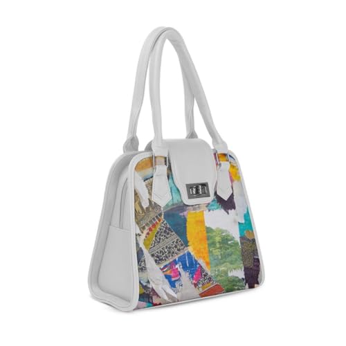 Generic - شنطة يد بيضاء من ميتروبوليتان تشارم بطباعة فنية، نمط متعدد الالوان