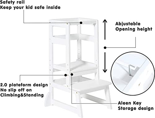 Micaddy - مقعد بدرج للاطفال الصغار مع قضيب امان، برج تعليمي قائم للاطفال في المطبخ والحمام، مقعد خشبي للاطفال الصغار مع قضيب امان للاطفال، طاولة صلبة قابلة للتعديل