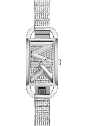 Michael Kors - ساعة يد ام كيه امباير فضية لامعة بثلاثة عقارب وسوار من الفولاذ المقاوم للصدأ للنساء من مايكل كورس (موديل: MK4841)، فضية