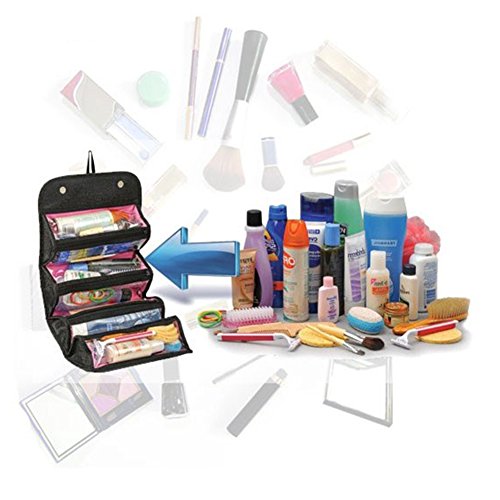 Misscat - شنطة مستحضرات تجميل للسفر متعددة الوظائف بسعة كبيرة قابلة للطي للنساء (اسود)