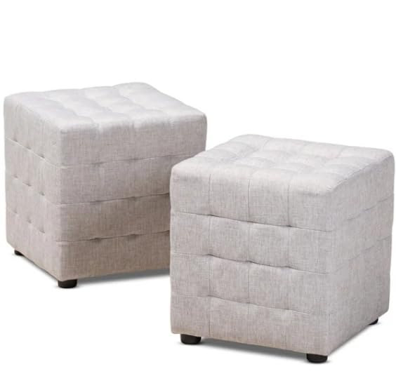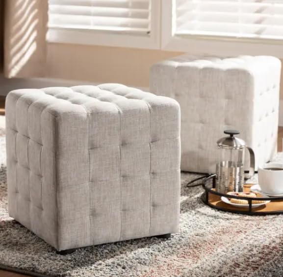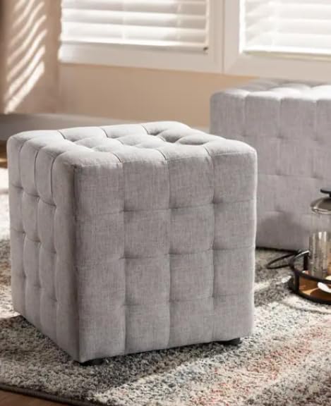 Generic - مسند قدم مربع عصري منجد من قماش الكتان، مقعد مكعب كلاسيكي معقود بازرار لغرفة المعيشة وغرفة النوم، رمادي فاتح