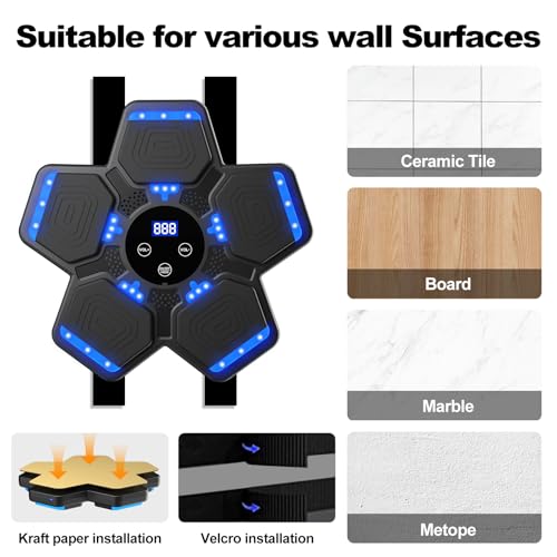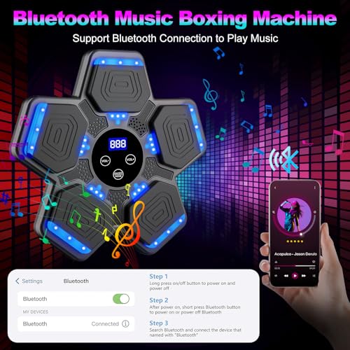 - 【آلة ملاكمة موسيقية بلوتوث LED】- تم تجهيز آلة الملاكمة الموسيقية باتصال بلوتوث ومكبر صوت مدمج، يمكنك اختيار أغانيك المفضلة عبر البلوتوث أثناء تدريب الملاكمة، مما سيبقيك منغمسًا أثناء التدريب، مزيج من الموسيقى المفضلة مع وميض LED على الإيقاع وتأثيرات الضوء الرائعة، قم بتدريب حواسك والتنسيق، مما يجعل تدريب الملاكمة أكثر متعة وإثارة