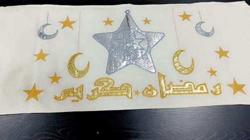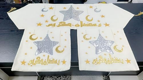 LC - رNER دك الكتان نجمه وهلال رمضان كريم لون اوف وايت دهبى متر ونص و 2 مخده 40 سم