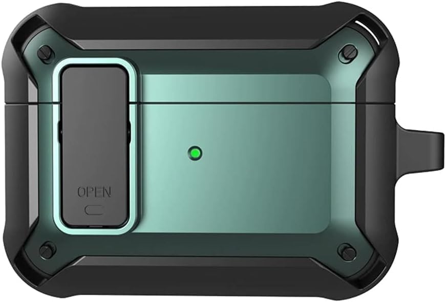Next store - جراب سماعة من Next Store متوافق مع ايربودز الجيل 3 | جراب حماية مع زر قفل وميدالية مفاتيح معدنية | (جراب فقط) (اسود×اخضر)، جلد صناعي