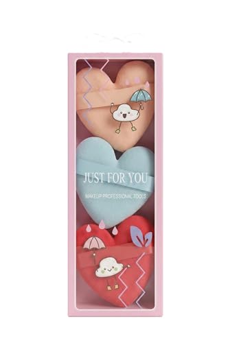 Nopatia - طقم إسفنجة بودرة مخملية شكل قلب 3 قطع من Nopatia باف مكياج قطيفة ناعمة بشريط للوجه وتحت العين، إسفنجة لتوزيع البودرة السائبة وتثبيت المكياج، أدوات تجميل احترافية قابلة للغسل ل