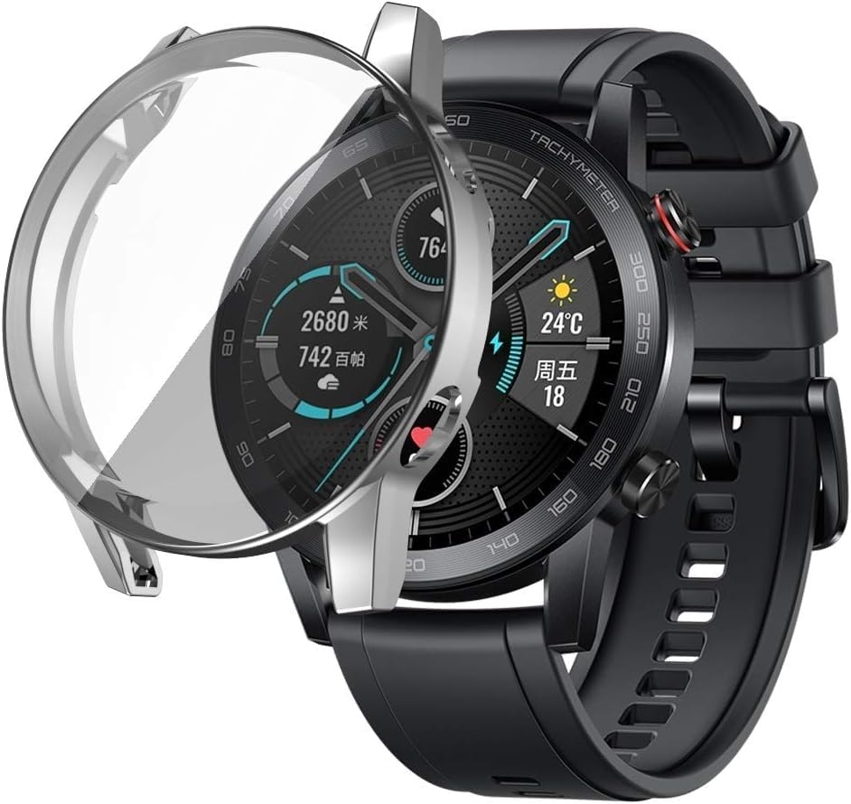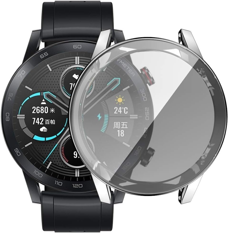 Nopatia - غطاء واقي للساعه الذكيه من Nopatia متوافق مع ساعة هونر ماجيك 2 مقاس 46 ملم، حماية كاملة للشاشة، ممتص للصدمات، بولي يوريثان مقاوم للحرارة، تصميم نحيف (فضي)