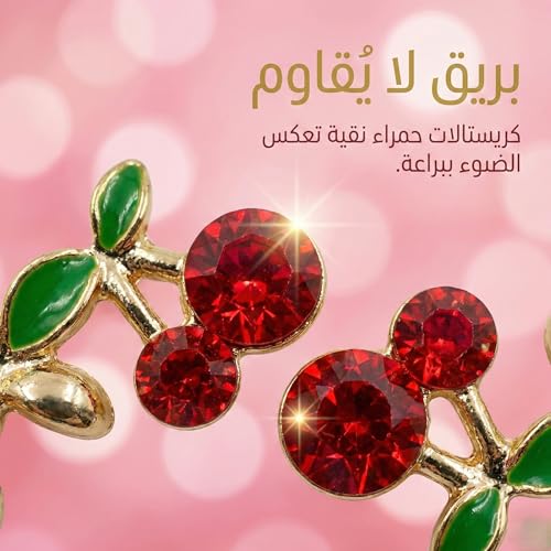 Nopatia - طقم أقراط الكرز اللامعة من Nopatia - حلق أذن ذهبي مرصع بالكريستال الأحمر - إكسسوارات مجوهرات أنيقة وجذابة للنساء والفتيات - مجموعة أقراط صغيرة تضفي لمسة حيوية