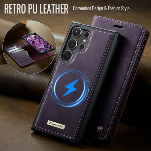 UNBLACK - جراب موبايل جلد صناعي بتصميم فاخر C49 من انبلاك، غطاء قلاب بفتحة للبطاقات يدعم الشحن اللاسلكي المغناطيسي، غطاء خلفي قابل للفصل متوافق مع سامسونج جالاكسي S23 الترا (أرجواني)