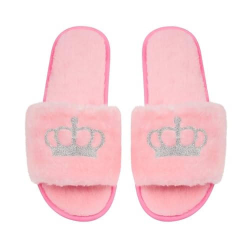 Generic - شبشب بينك فرو نسائيتاج فضي