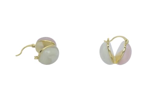 Generic - اقراط هاجي بلاتينيوم مع نصفين حجر بينك وكريمي للنساء - ذهبي باستيل