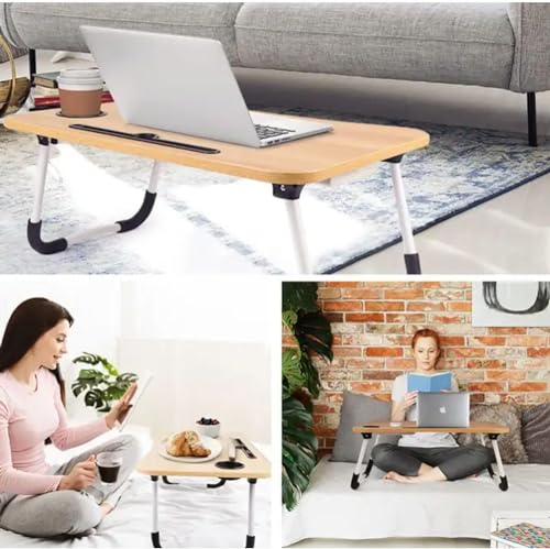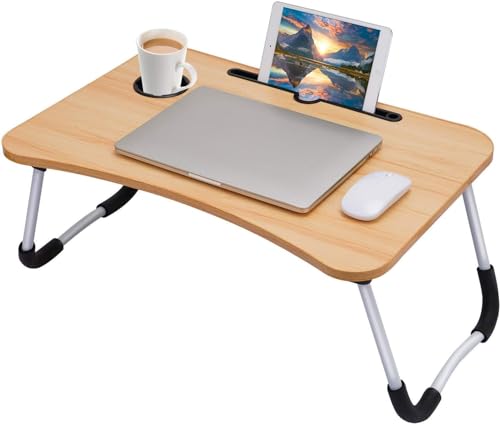 PPS TRADING - مكتب لاب توب محمول قابل للطي بحامل أكواب وحامل اي باد وأرجل قابلة للطي وغير قابل للانزلاق من بي بي اس تريدينج، طاولة قراءة للسرير والعمل والدراسة والتخييم (بيج)