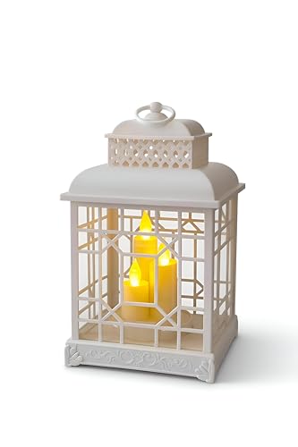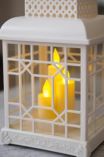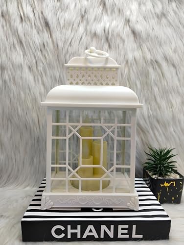 Generic - طقم فانوس اكريليك فاخر - نموذج 3 شموع مستورد، ارتفاع 30 سم، عرض 18 سم، الوان عصرية مع اضاءة محيطة مفعلة بالحجر (ابيض)