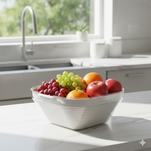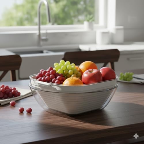 - مجموعة من قطعتين: تتضمن وعاء أكريليك شفاف ممتاز وحشوة مصفاة قابلة للإزالة، مثالية للغسيل والتصريف وتقديم الفواكه والخضروات الطازجة