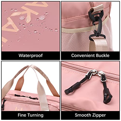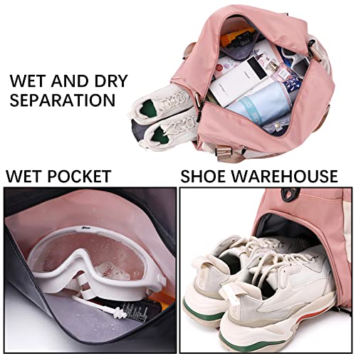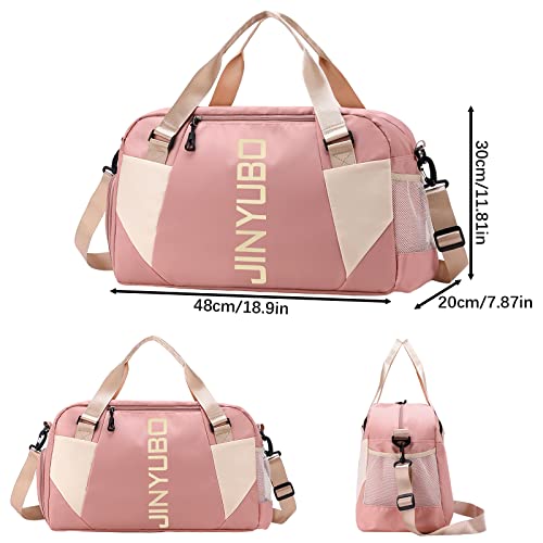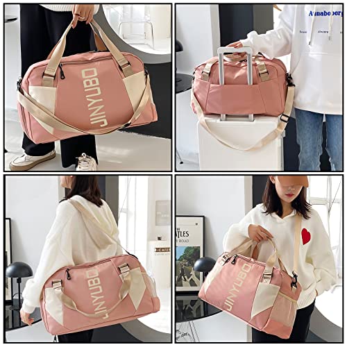 QKTYB - شنطة سفر للنساء والرجال من كيو كيه تي واي بي جيم بجيب لوضع الأحذية كبيرة القماش الخشن الجاف شنط عطلة نهاية الأسبوع ليلية للطائرة والسفر والسباحة والرياضة نايلون زهري