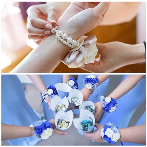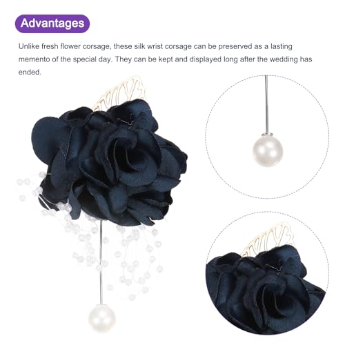 QUARKZMAN - بروش سوار معصم مزخرف بزهرات صناعية من كواركزمان، قطعة واحدة، سوار لون وردي للعروس والعريس لتزيين حفلات الزفاف والأعياد الإسلامية والذكرى السنوية، بحجم 12x7 سم، لون كحلي