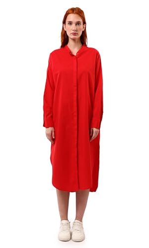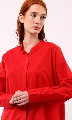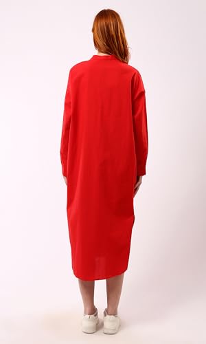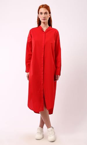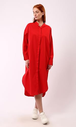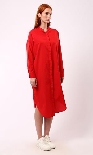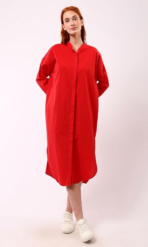 Ravin - ريفين فستان بتصميم قميص احمر باكمام طويلة وازرار امامية مخفية عصري للنساء