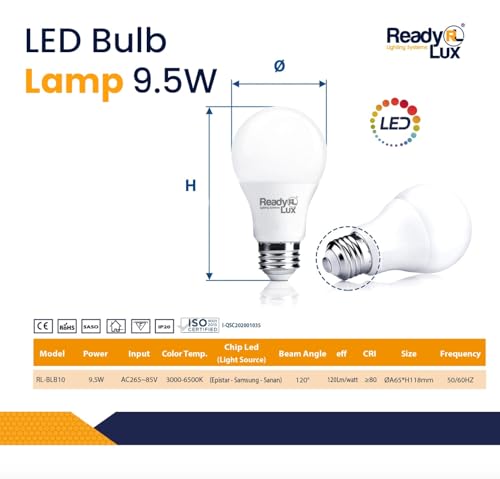Ready Lux - لمبة ليد بالب 9.5 واط 6500 كلفن 1140 لومن بقاعدة E27 من ريدي لكس إضاءة أبيض ناصع